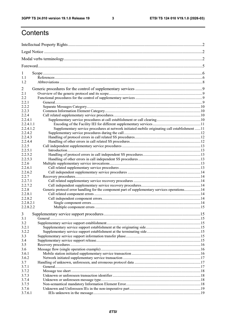 ETSI TS 124 010 V19.1.0 (2026-03) - Digital cellular telecommunications system (Phase 2+) (GSM); Universal Mobile Telecommunications System (UMTS); LTE; Mobile radio interface layer 3; Supplementary services specification; General aspects (3GPP TS 24.010 version 19.1.0 Release 19)
