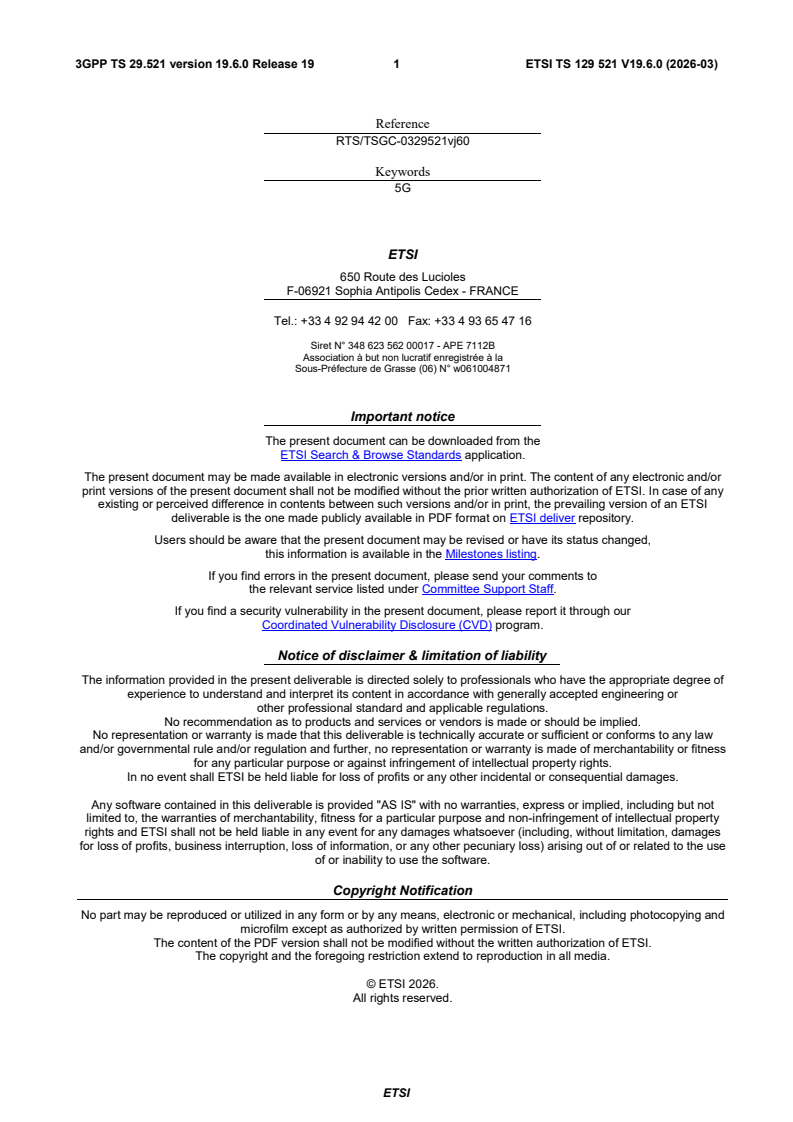 3GPP TS 29.521 version 19.6.0 Release 19 2 ETSI TS 129 521 V19.6.0 (2026-03)