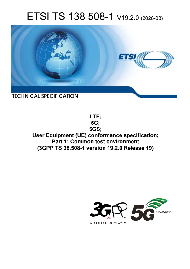 3GPP TS 38.508-1 version 19.2.0 Release 19 2 ETSI TS 138 508-1 V19.2.0 (2026-03)