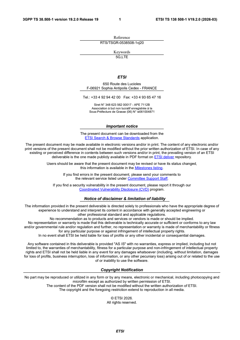3GPP TS 38.508-1 version 19.2.0 Release 19 3 ETSI TS 138 508-1 V19.2.0 (2026-03)