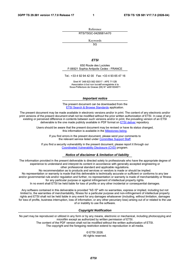 3GPP TS 29.581 version 17.7.0 Release 17 2 ETSI TS 129 581 V17.7.0 (2026-04)