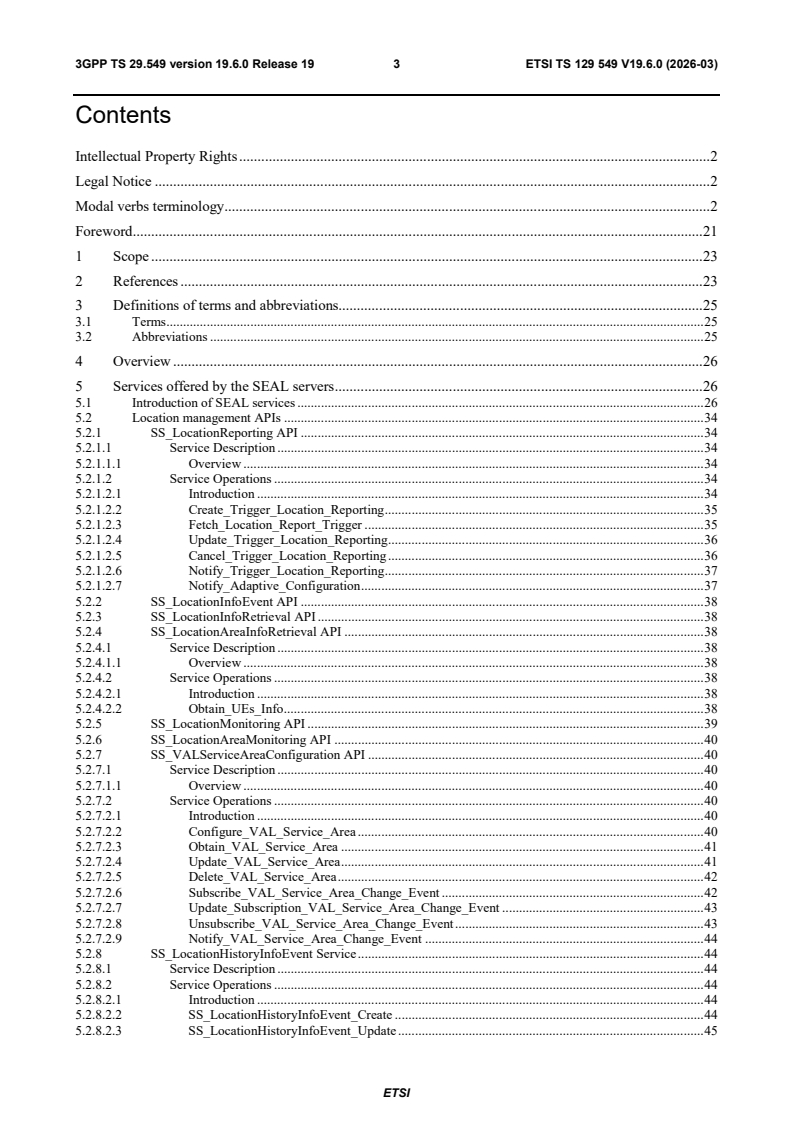 ETSI TS 129 549 V19.6.0 (2026-03) is a standard published by the European Telecommunications Standards Institute (ETSI). Its full title is "LTE; 5G; Service Enabler Architecture Layer for Verticals (SEAL); Application Programming Interface (API) specification; Stage 3 (3GPP TS 29.549 version 19.6.0 Release 19)". This standard covers: RTS/TSGC-0329549vj60