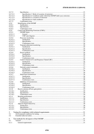 The standard focuses on spectrum protection, system behaviour and conformance tests for mobile and stationary ESOMPs, including: