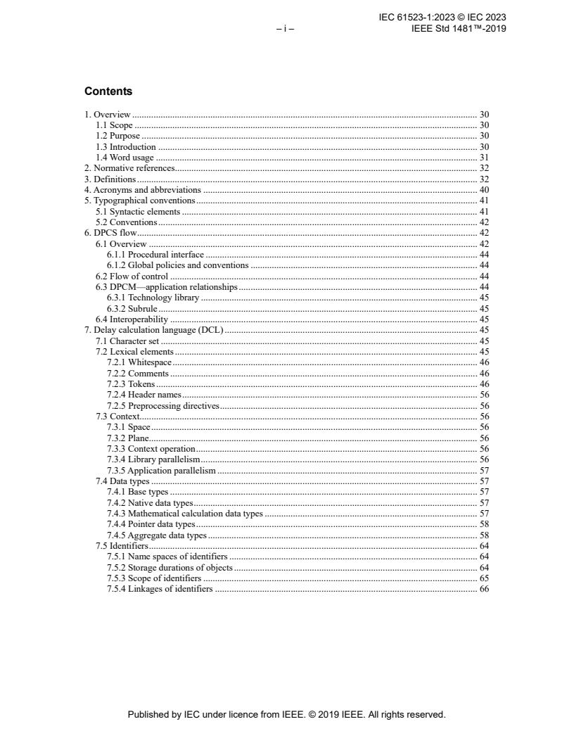 Keywords: IEC 61523-1, IC Open Library Architecture, delay calculation language, DCL, SPEF, procedural interface, delay and power calculation, signal integrity.