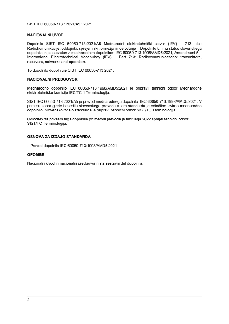 Mednarodni elektrotehniški slovar (IEV) - 713. del: Radiokomunikacije: oddajniki, sprejemniki, omrežja in delovanje - Dopolnilo 5