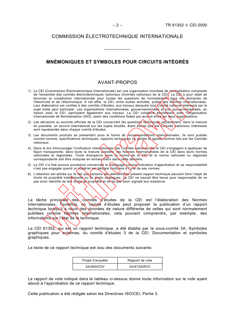 IEC TR 61352:2000, titled "Mnemonics and Symbols for Integrated Circuits," is a Technical Report published by the International Electrotechnical Commission (IEC). This document provides essential recommendations aimed primarily at designers and manufacturers of integrated circuits (I.C.) to standardize the use of mnemonics and qualifying symbols. The goal is to develop consistent and clear symbols for integrated circuit devices, facilitating improved communication, design, documentation, and manufacturing processes in the electronics industry.