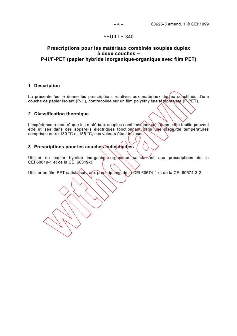This amendment introduces additional sheets to Part 3, detailing specific layered material constructions including duplex and triplex laminates comprising hybrid inorganic-organic paper, polyethylene terephthalate (PET) films, and filled glass papers. It aims to harmonize the quality, testing, and classification of these materials for use in electrical apparatus across varying temperature classifications.