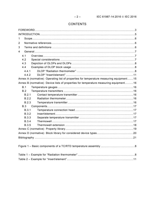 IEC 61987-14:2016 - Industrial-process measurement and control - Data structures and elements in process equipment catalogues - Part 14: Lists of properties (LOP) for temperature measuring equipment for electronic data exchange