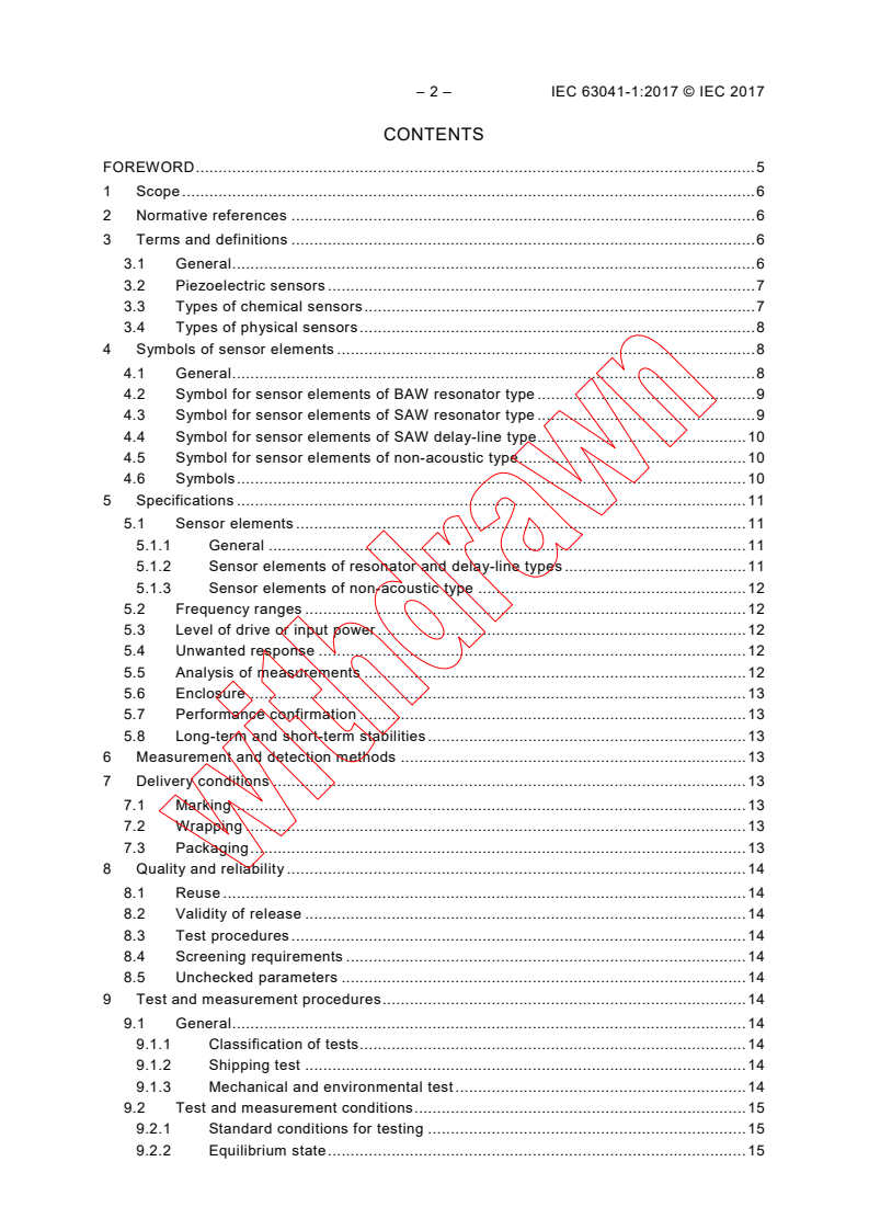 Keywords: IEC 63041-1, piezoelectric sensors, resonator, delay-line, non‑acoustic, measurement methods, detection methods, sensor specifications, test procedures.