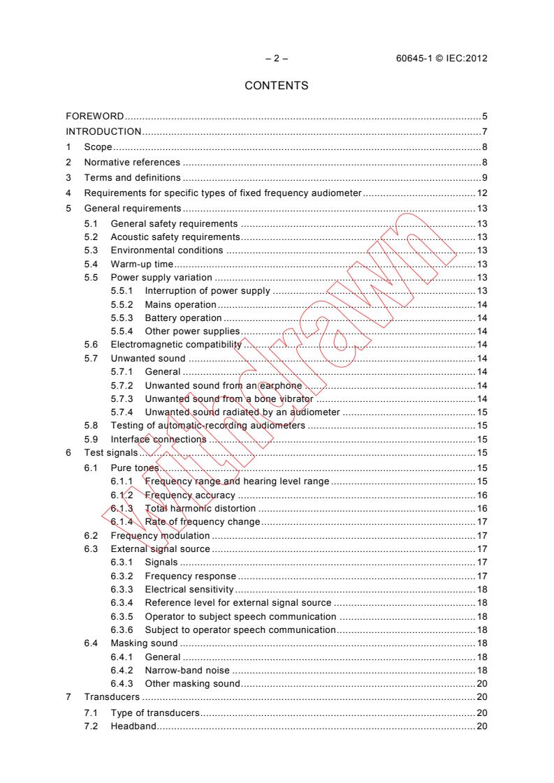 IEC 60645-1:2012 specifies general requirements for audiometers and particular requirements for pure-tone audiometers designed for use in determining hearing threshold levels, relative to standard reference threshold levels established by means of psychoacoustic test methods. The object of this standard is to ensure: