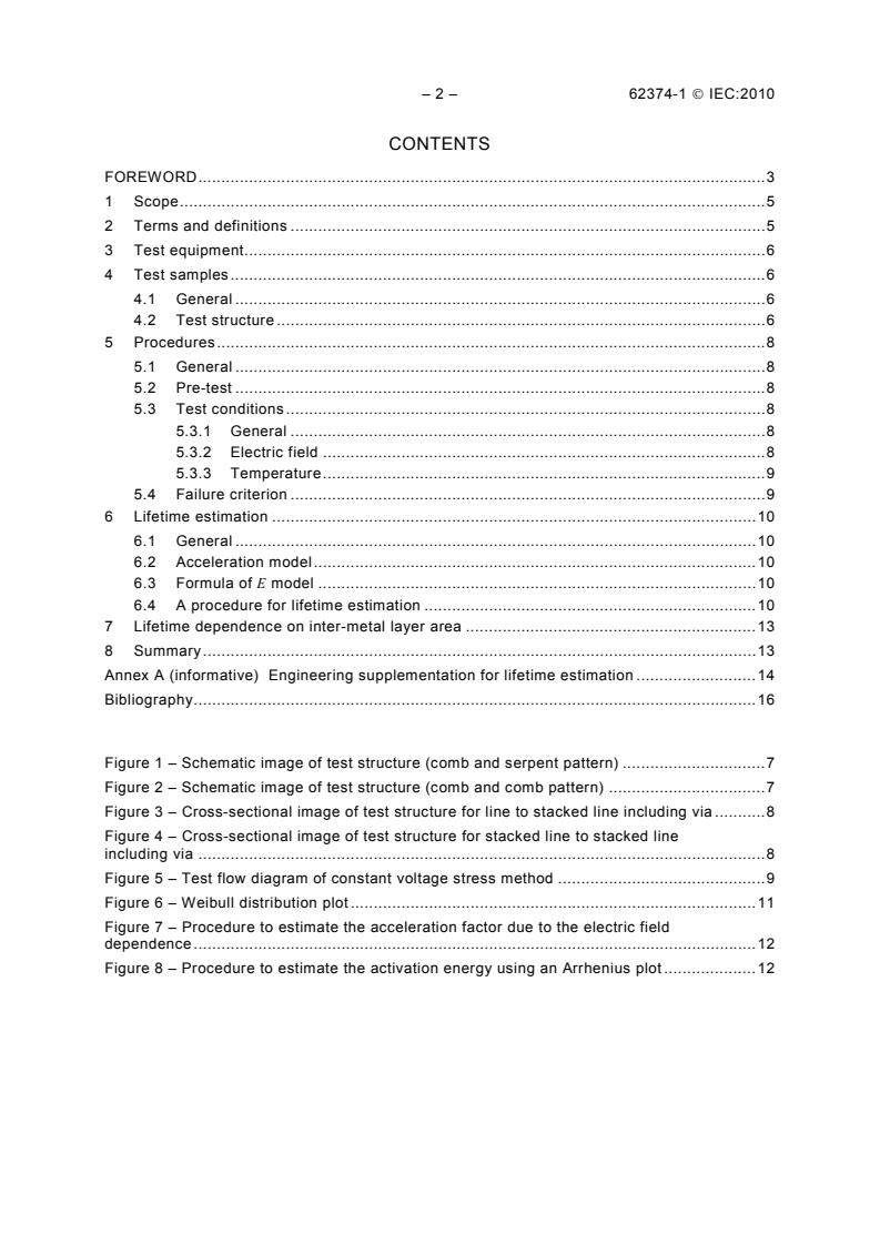 IEC 62374-1:2010 describes a test method, test structure and lifetime estimation method of the time-dependent dielectric breakdown (TDDB) test for inter-metal layers applied in semiconductor devices.
