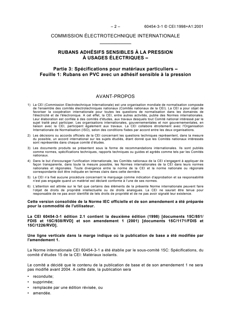 La CEI 60454-3-1 édition 2.1 contient la deuxième édition (1998) [documents 15C/851/