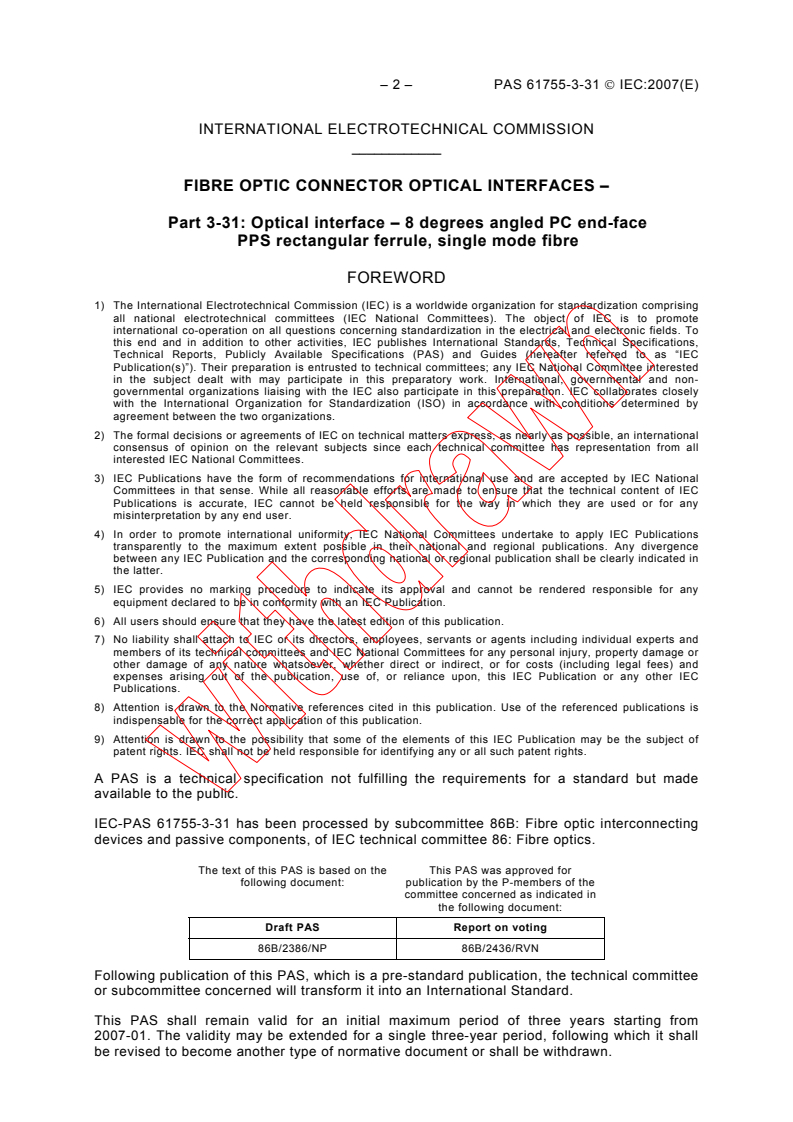 IEC-PAS 61755-3-31 has been processed by subcommittee 86B: Fibre optic interconnecting