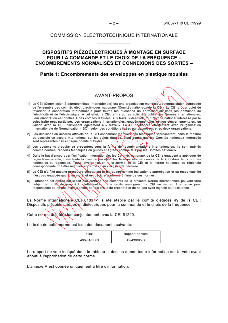 IEC 61837-1:1999 - Surface mounted piezoelectric devices for frequency control and selection - Standard outlines and terminal lead connections - Part 1: Plastic moulded enclosure outlines Released:5/7/1999 Isbn:2831847478