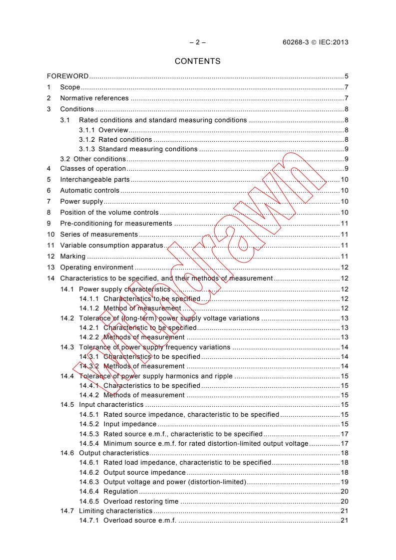 IEC 60268-3:2013 is a standard published by the International Electrotechnical Commission (IEC). Its full title is "Sound system equipment - Part 3: Amplifiers". This standard covers: IEC 60268-3:2013 applies to analogue amplifiers, and the analogue parts of analogue/digital amplifiers, which form part of a sound system for professional or household applications. It specifies the characteristics which should be included in specifications of amplifiers and the corresponding methods of measurement. This fourth edition cancels and replaces the third edition published in 2000 and constitutes a technical revision. It includes the following technical changes: - rated condition of multi-channel amplifier is expanded; - arrangement for the D-class amplifier is added; - method of measurement for output power (distortion-limited) is expanded; - Annex B is newly added. This publication is to be read in conjunction with IEC 60268-1:1985 and IEC 60268-2:1987