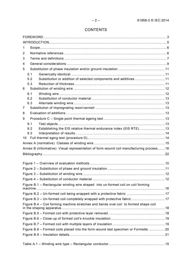 IEC 61858-2:2014 is a standard published by the International Electrotechnical Commission (IEC). Its full title is "Electrical insulation systems - Thermal evaluation of modifications to an established electrical insulation system (EIS) - Part 2: Form-wound EIS". This standard covers: IEC 61858-2:2014 lists the required test procedures for qualification of modifications of an established electrical insulation system (EIS) with respect to its thermal classification. This standard is applicable to EIS used in form-wound electrotechnical devices. The test procedures are comparative in that the performance of a candidate EIS is compared to that of a reference EIS, which has proven service experience in accordance with IEC 60505 or has been evaluated by one of the procedures given in IEC 60085 and IEC 60034-18-31.