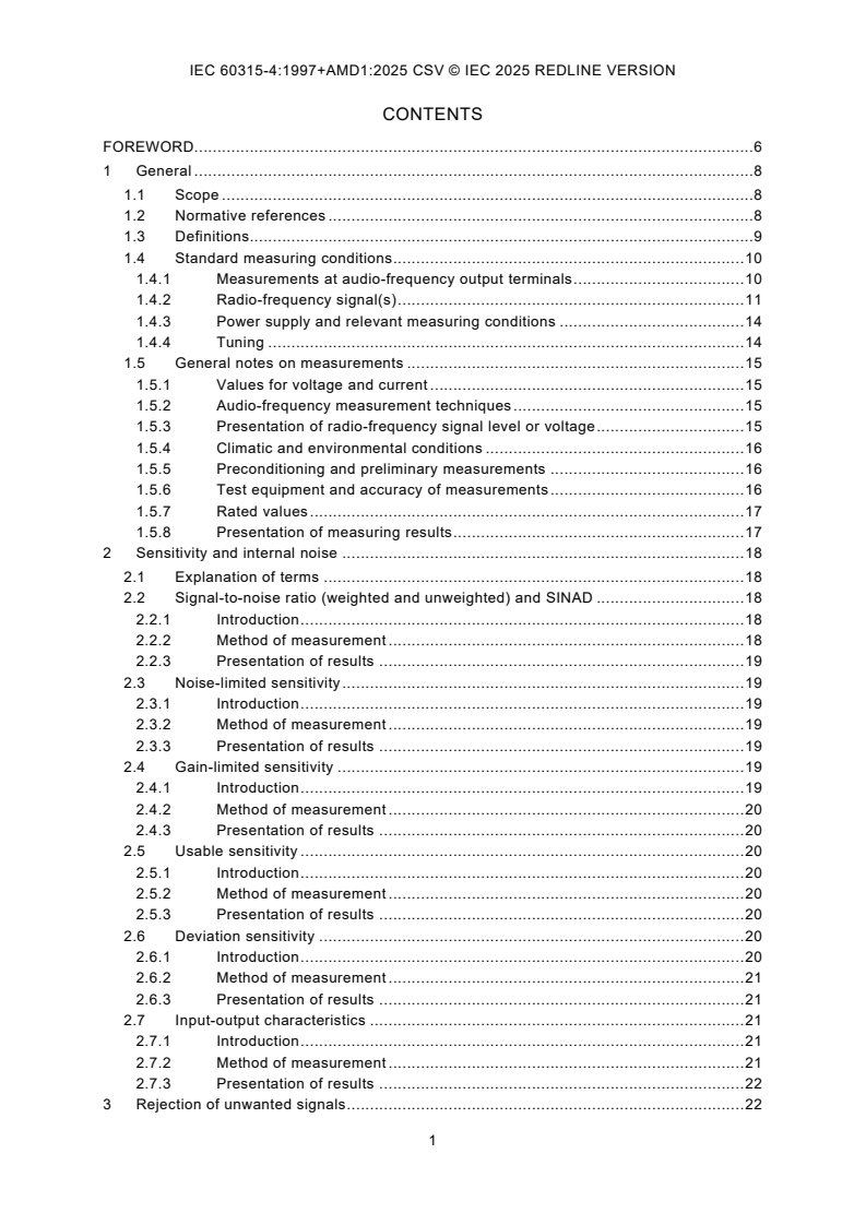 IEC 60315-4:1997+AMD1:2025 CSV - Methods of measurement on radio receivers for various classes of emission - Part 4: Receivers for frequency-modulated sound broadcasting emissions Released:15. 12. 2025 Isbn:9782832709580