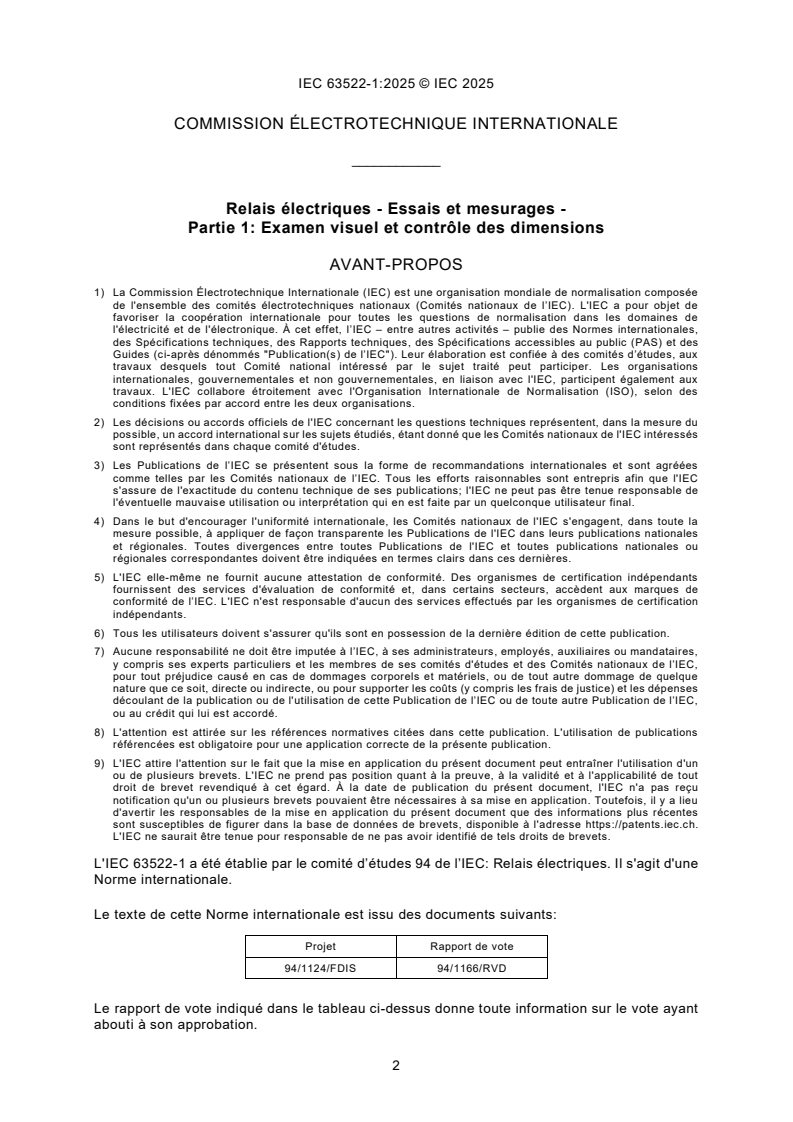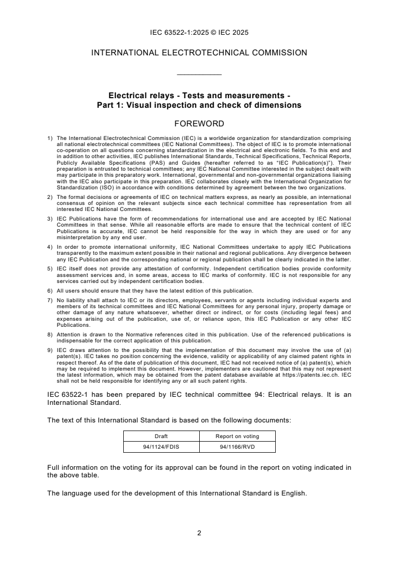 Keywords: IEC 63522-1:2025, electrical relays tests, visual inspection, check of dimensions, non-destructive testing, clearance and creepage, relay marking, dimensional inspection.