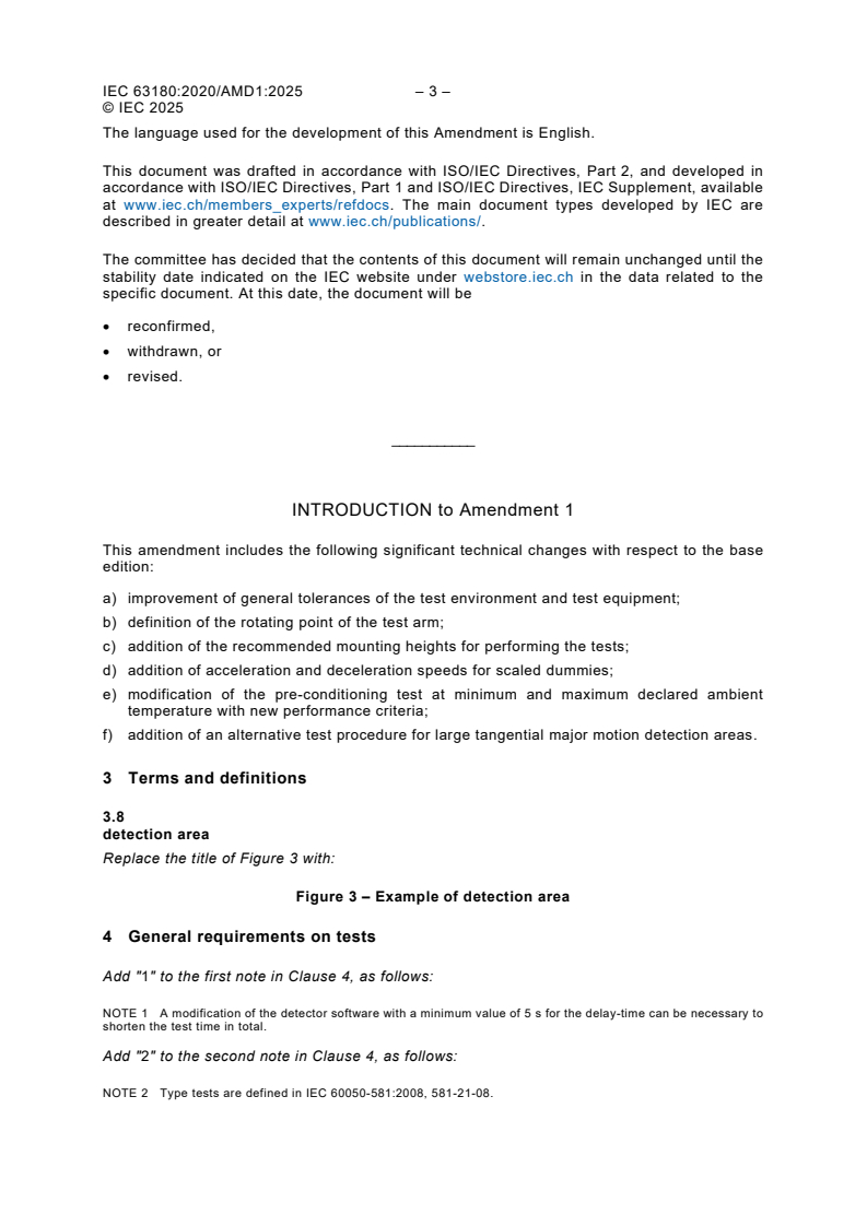 Keywords: IEC 63180 amendment, passive infrared detectors, PIR motion detection standard, detection range measurement, motion sensor testing, major and minor motion, test procedure, test environment, pre-conditioning test, automated test systems, test dummy specifications, mounting height for PIR detectors.