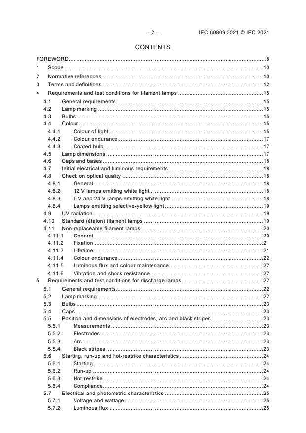 IEC 60809:2021 is applicable to electric light sources for use in automotive applications, for example in road illumination devices and/or light signalling devices for road vehicles. It is especially applicable to light sources listed in UN Resolution R.E.5 and light sources subject to other legislations. This fourth edition cancels and replaces the third edition published in 2014, Amendment 1:2017, Amendment 2:2017 and Amendment 3:2019. This edition constitutes a technical revision. This edition includes the following significant technical changes with respect to the previous edition: a) Introduction of a light technical measurement on LED light sources intended for use in front-lighting applications. b) As the original data sheets and some figures from previous editions were not available in an editable format, they have been reproduced from their old format, following the current drafting rules and are now in single language format. Some reproductions constitute minor (obvious) editorial changes of the original text sections and original figures; no technical changes were introduced.