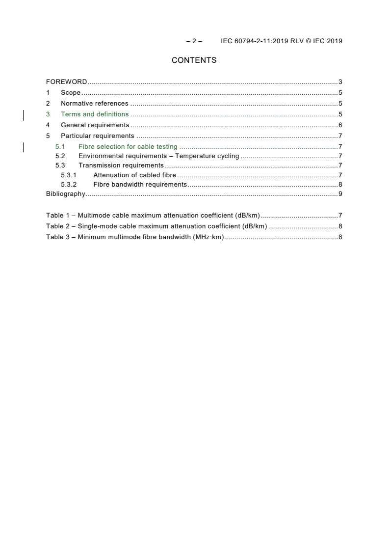 IEC 60794-2-11:2019 RLV - Optical fibre cables - Part 2-11: Indoor cables - Detailed specification for simplex and duplex cables for use in premises cabling Released:4/12/2019 Isbn:9782832268391