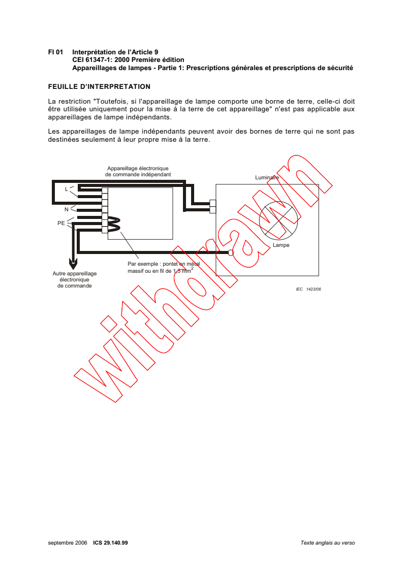 IEC 61347-1:2000 - Lamp controlgear - Part 1: General and safety requirements Released:10/13/2000 Isbn:2831854946