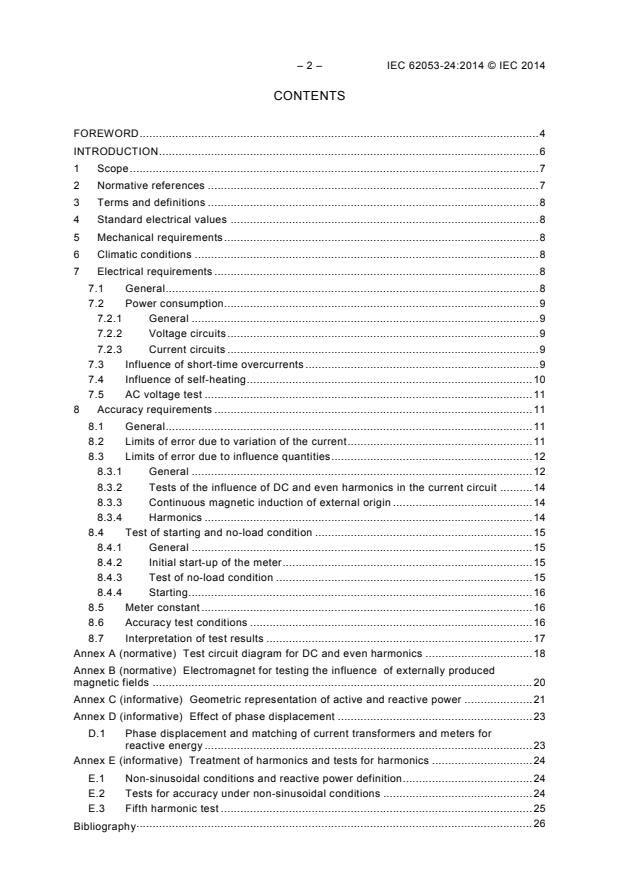 IEC 62053-24:2014 is an international standard published by the International Electrotechnical Commission (IEC) that specifies particular requirements for static electricity meters used to measure reactive energy in alternating current (a.c.) electrical systems. This standard focuses exclusively on newly manufactured static var-hour meters - transformer operated meters of accuracy classes 0.5 S and 1 S, and direct connected meters of accuracy class 1. These meters are designed for fundamental frequency measurement of reactive energy in 50 Hz or 60 Hz networks.