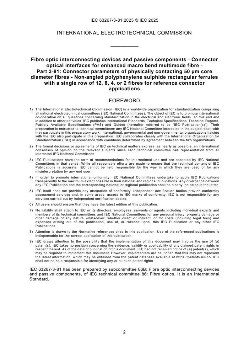 Keywords: IEC 63267-3-81:2025, fibre optic connectors, multimode fibre, enhanced macro bend fibre, rectangular ferrules, physical contact connector, optical interface, fibre optic standards, attenuation measurement, IEC fibre connectors, 50 μm core optical fibre, reference connectors, fibre optic interconnection.