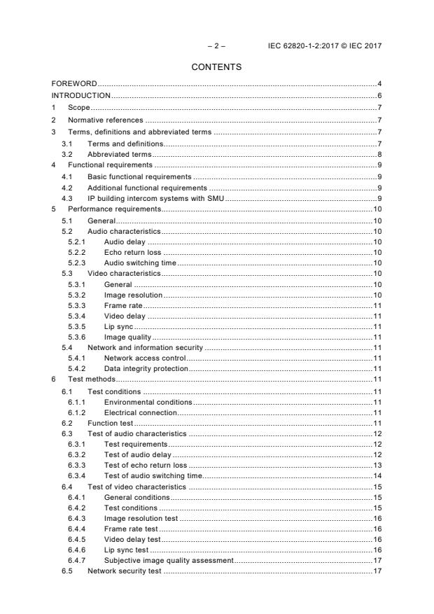 IEC 62820-1-2:2017 is a standard published by the International Electrotechnical Commission (IEC). Its full title is "Building intercom systems - Part 1-2: System requirements - Building intercom systems using the internet protocol (IP)". This standard covers: IEC 62820-1-2:2017 specifies the technical requirements for the composition, functions, performance and test methods of building intercom systems using the internet protocol (IP), and it is a supplement to IEC 62820-1-1. This document is applicable to the IP building intercom systems for both residential and commercial buildings.