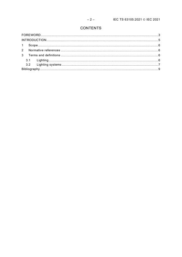 IEC TS 63105:2021(E) establishes terms and definitions in the field of lighting systems and related equipment. Terminological literature for other fields of lighting is listed in the bibliography.