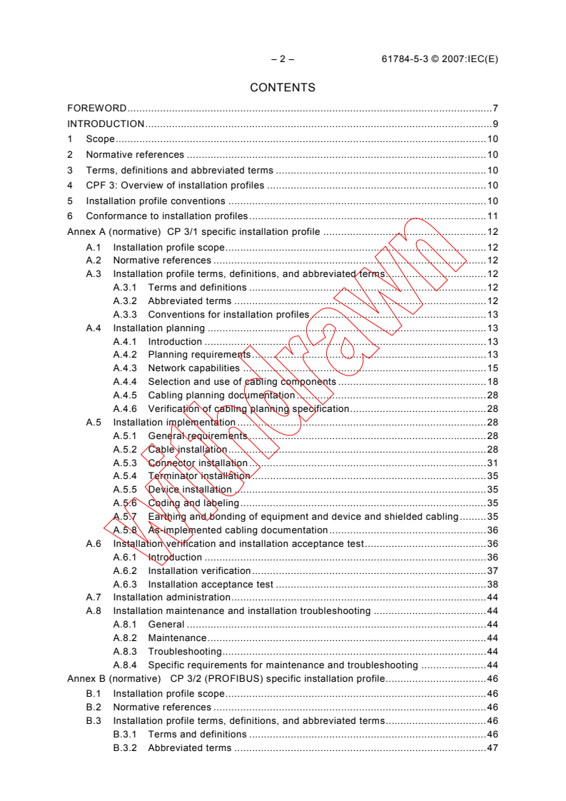 IEC 61784-5-3:2007 specifies the installation profiles for CPF 3 (PROFIBUS/PROFINET). The installation profiles are specified in the annexes. These annexes are read in conjunction with IEC 61918:2007. This bilingual version (2014-12) corresponds to the English version, published in 2007-12.