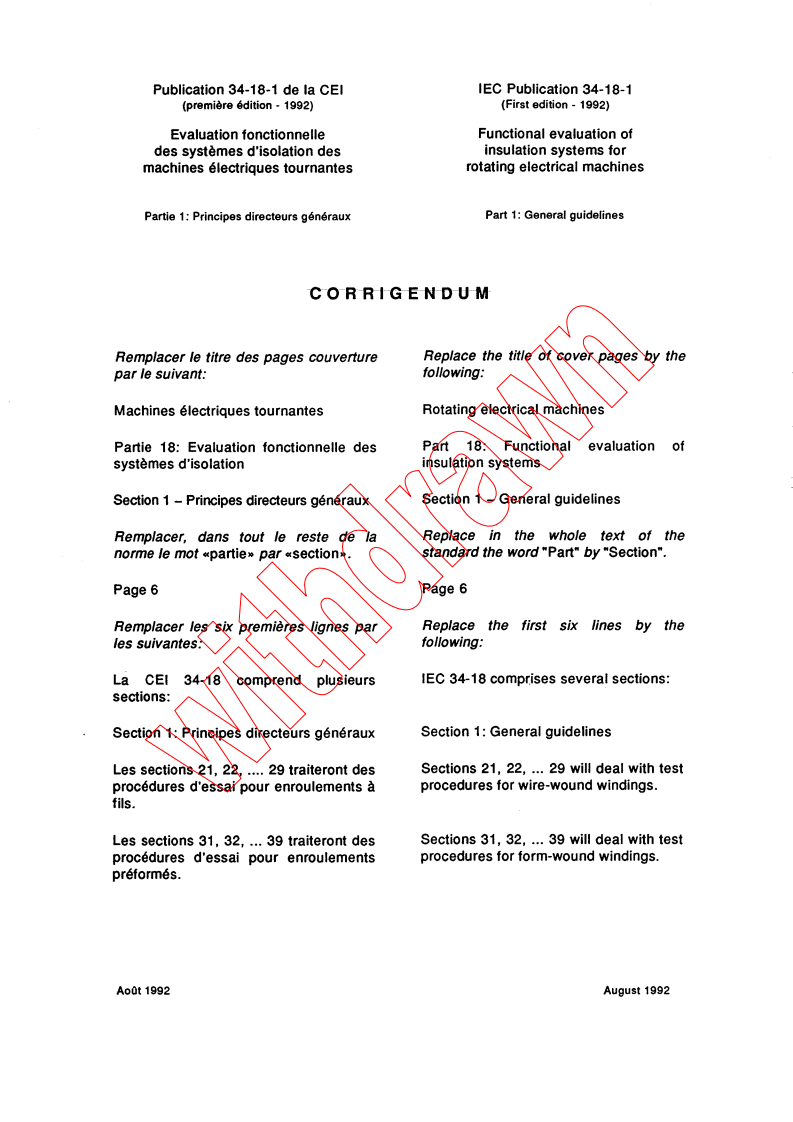 IEC 60034-18-1:1992/COR1:1992 - Corrigendum 1 - Rotating electrical machines - Part 18: Functional evaluation of insulation systems - Section 1: General guidelines Released:8/1/1992