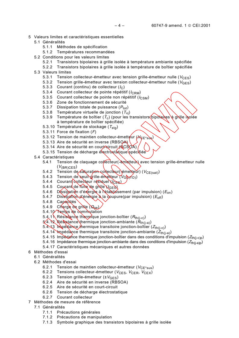 Amendement 1 - Dispositifs à semiconducteurs - Dispositifs discrets - Partie 9: Transistors bipolaires à grille isolée (IGBT)