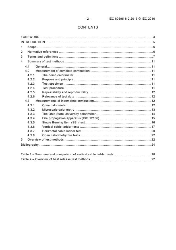 IEC 60695-8-2:2016은 전기 기술 제품이나 그것으로 구성된 재료의 화재 시험에서 발생하는 열 방출을 결정하는데 관련된 출판된 시험 방법을 요약한 표준입니다. 이는 시험 방법의 최신 기술 수준을 나타내며, 가능한 경우 그들의 관련성과 사용에 대한 특별한 관찰을 포함합니다. 시험 방법 목록은 철저하지 않으며, IEC에 의해 개발되지 않은 시험 방법은 IEC에 의해 인증된 것으로 간주되지 않습니다. 열 방출 데이터는 화재 위험 평가 및 화재 안전 공학에서 사용될 수 있습니다. 이 표준은 IEC 60695-8-1과 함께 사용되어야 합니다.