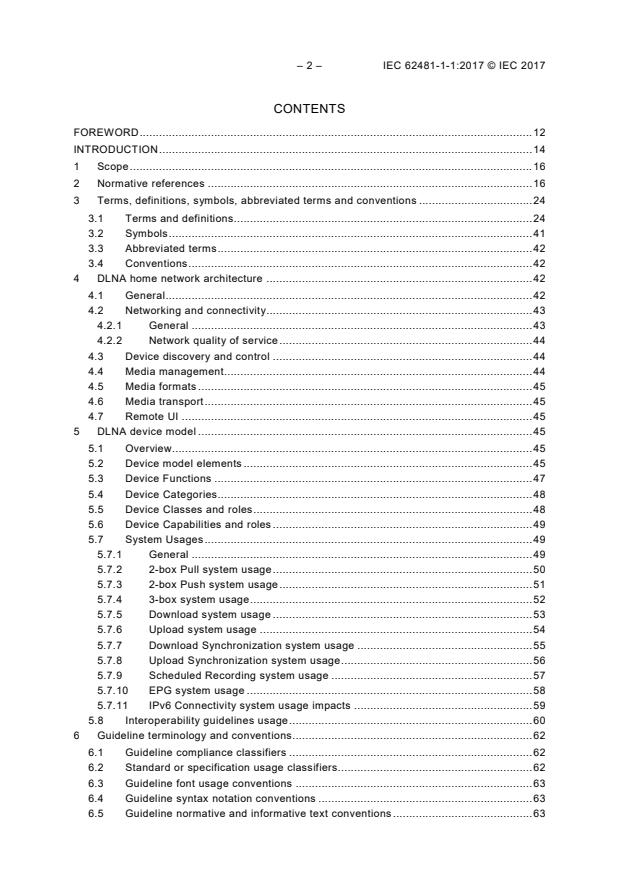 IEC 62481-1-1:2017 is a standard published by the International Electrotechnical Commission (IEC). Its full title is "Digital living network alliance (DLNA) home networked device interoperability guidelines - Part 1-1: Architecture and protocols - Core architecture and protocols". This standard covers: IEC 62481-1-1:2017(E) specifies the core architecture and protocols of DLNA implementations. This third edition cancels and replaces IEC 62481-1 published in 2013 and constitutes a technical revision. This edition includes the following significant technical changes with respect to the previous edition: a) removal of Bluetooth, printers (DMPr, +PR1+ and +PR2+), Mobile Digital Media Uploader (M-DMU), Mobile Digital Media Downloader (M-DMD), Mobile Network Connectivity Function (M NCF) and Media Interoperability Unit (MIU); b) removal of CEA2014 guidelines (RUISRC, RUISINK, RUICTRL, RUIPL); c) addition of IPv6; d) heading levels adjusted to be no deeper that heading level 5.
