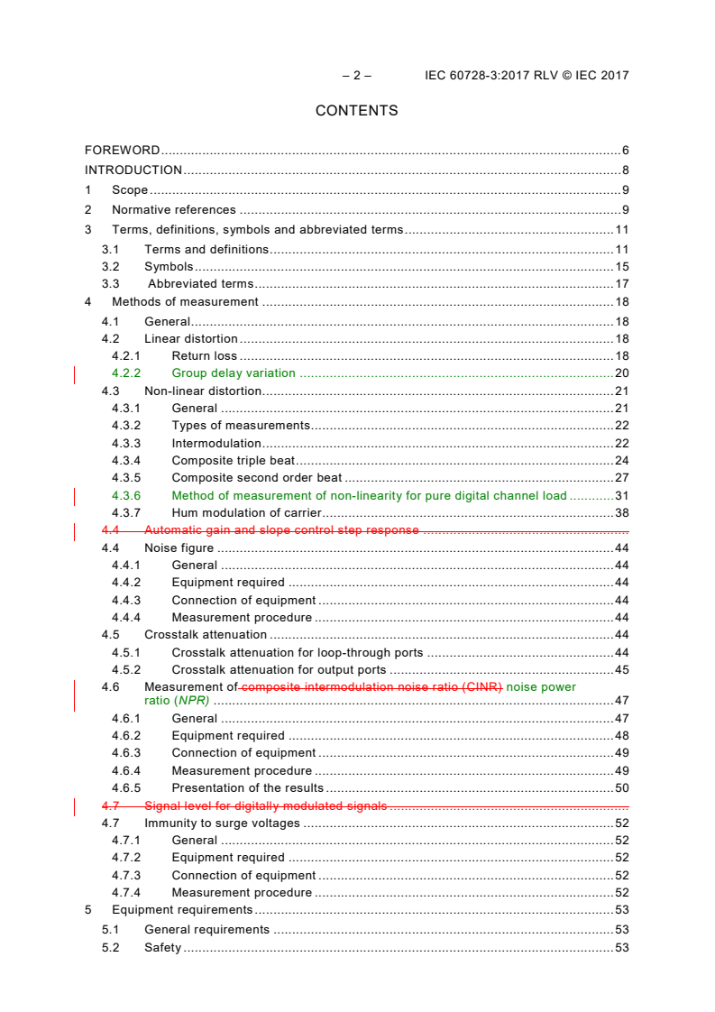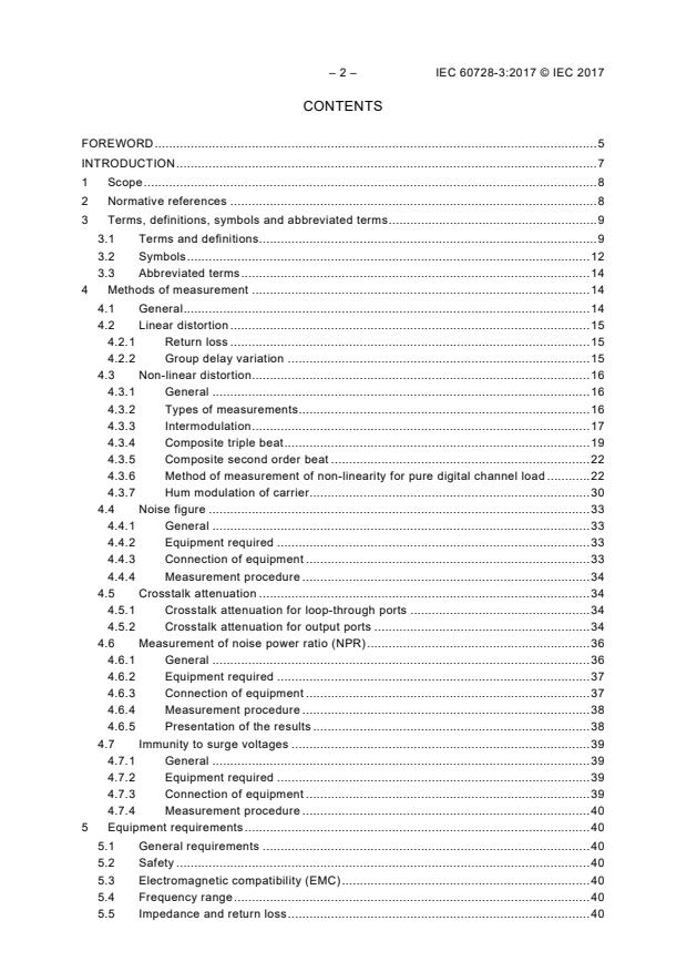 Keywords: IEC 60728-3, active wideband equipment, cable networks, CTB, CSO, CINR, noise figure, return loss, intermodulation, forward path, return path, measurement methods.