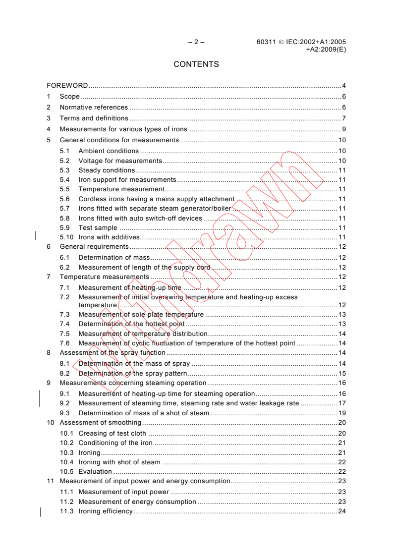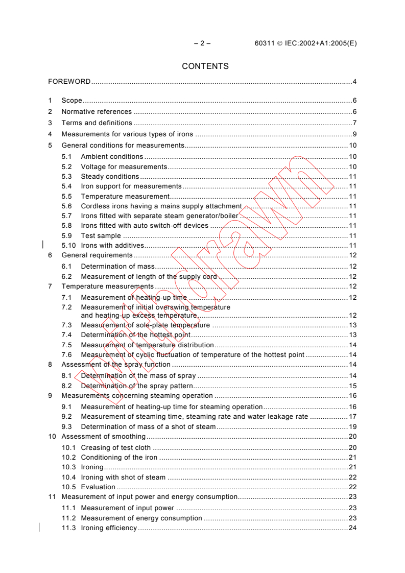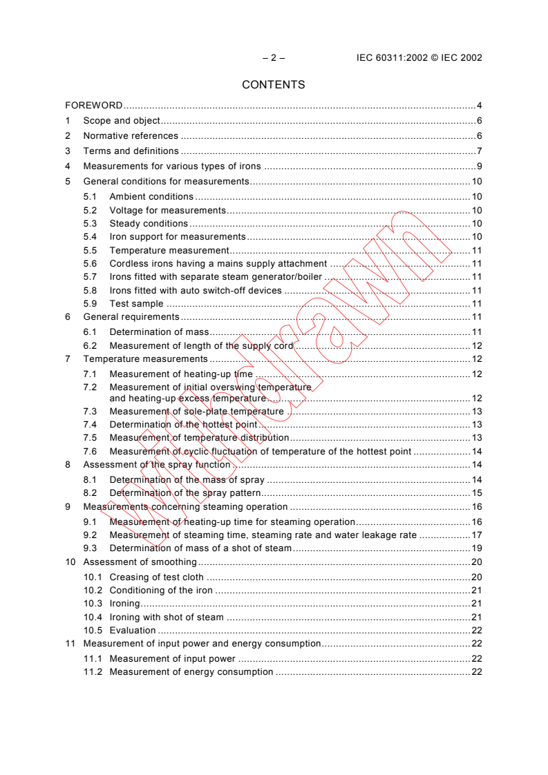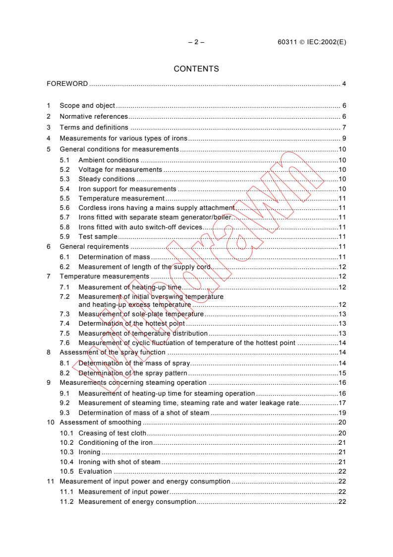 Keywords: IEC 60311, electric irons, performance testing, sole‑plate temperature, steaming operation, spray function, measurement methods, household irons.