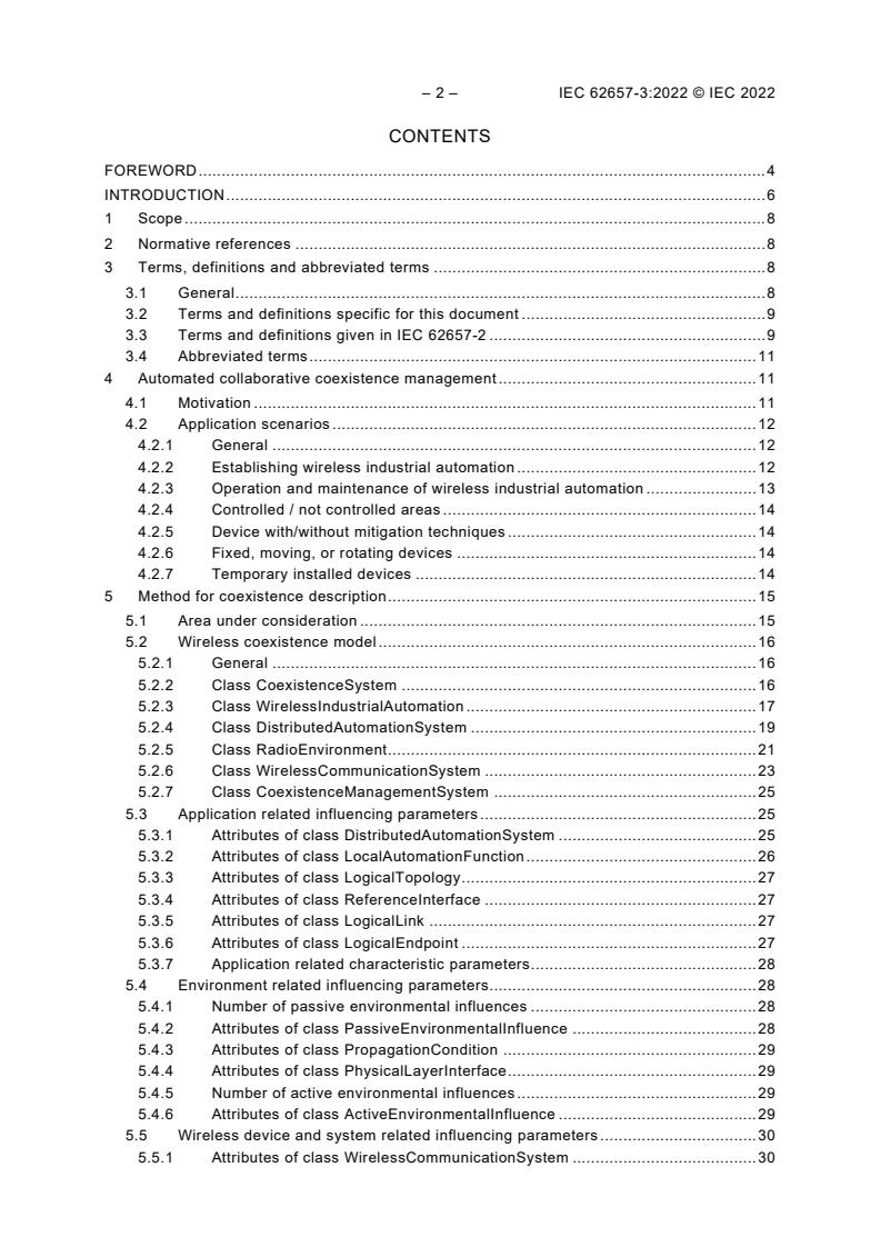 IEC 62657-3:2022, titled "Industrial networks - Coexistence of wireless systems - Part 3: Formal description of the automated coexistence management and application guidance," is a critical International Electrotechnical Commission (IEC) standard published in 2022. This standard defines a general model approach for automated coexistence management between wireless systems used in industrial environments. It delivers both a formal, abstract description of system elements, properties, and interfaces and provides practical guidance for applying these concepts.