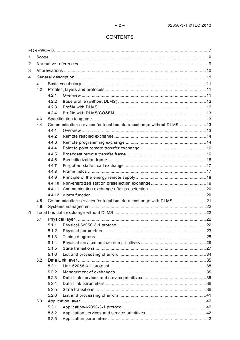 This standard defines three profiles for local bus data exchange supporting stations that may or may not be energized by the bus itself. The profiles-base profile, profile with DLMS, and profile with DLMS/COSEM-share a unified physical layer, ensuring full compatibility across devices. Key improvements in this 2013 edition include support for the DLMS/COSEM Application layer and object model, enhanced Data Link layer separation, and communication speed negotiation up to 9600 baud.