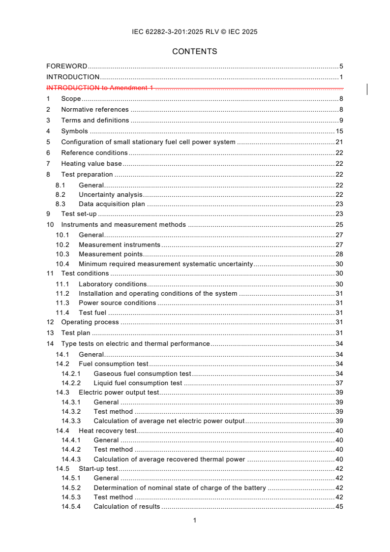 IEC 62282-3-201:2025 provides test methods for the electrical, thermal, and environmental performance of small stationary fuel cell power systems that meet the following criteria: - output: rated electric power output of less than 10 kW; - output mode: grid-connected/independent operation or stand-alone operation with single-phase AC output or 3-phase AC output not exceeding 1 000 V, or DC output not exceeding 1 500 V; - operating pressure: maximum allowable working pressure of 0,1 MPa (gauge) for the fuel and oxidant passages; - fuel: gaseous fuel (natural gas, liquefied petroleum gas, propane, butane, hydrogen, etc.) or liquid fuel (kerosene, methanol, etc.); - oxidant: air. This document describes type tests and their test methods only. No routine tests are required or identified, and no performance targets are set in this document. This document provides test methods to be carried out under laboratory conditions. This document covers fuel cell power systems whose primary purpose is the production of electric power and whose secondary purpose can be the utilization of heat. Accordingly, fuel cell power systems for which the use of heat is primary, and the use of electric power is secondary are outside the scope of this document. This third edition cancels and replaces the second edition published in 2017 and Amendment 1:2022. This edition includes the following significant technical changes with respect to the previous edition: - revision of Introduction; - revision of terms and definitions; - revision of Table 1; - revision of Figure 1, Figure 2, Figure 3 and Figure 4; - revision of measurement instruments (10.2); - revision of minimum required measurement systematic uncertainty (10.4); - revision of test conditions (Clause 11); - revision of operating process (Clause 12); - revision of fuel consumption test (14.2); - revision of heat recovery test (14.4); - revision of Figure 13 and Figure 14; - revision of calculation of results (14.14.4); - revision of Annex A and Annex B.