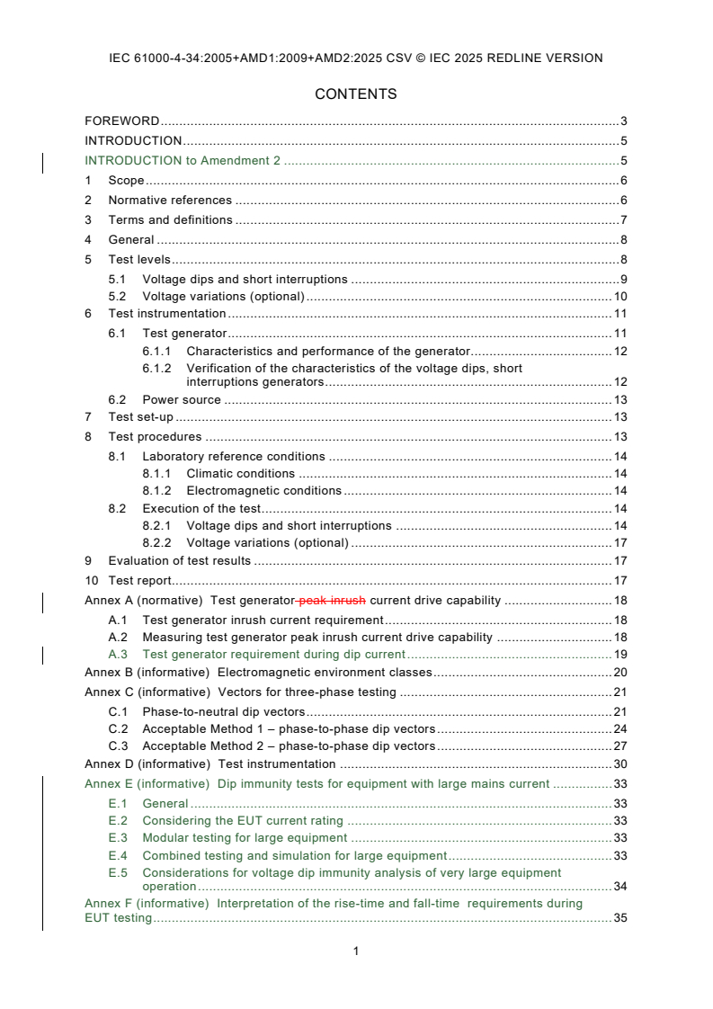 IEC 61000-4-34:2005+AMD1:2009+AMD2:2025 CSV - Electromagnetic compatibility (EMC) - Part 4-34: Testing and measurement techniques - Voltage dips, short interruptions and voltage variations immunity tests for equipment with mains current more than 16 A per phase Released:7. 08. 2025 Isbn:9782832706459