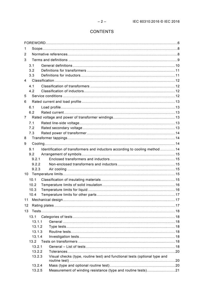 - Scope and Classification: Defines the scope of transformers and inductors covered, including traction and auxiliary transformers on rolling stock, and outlines classification by cooling method and application.
