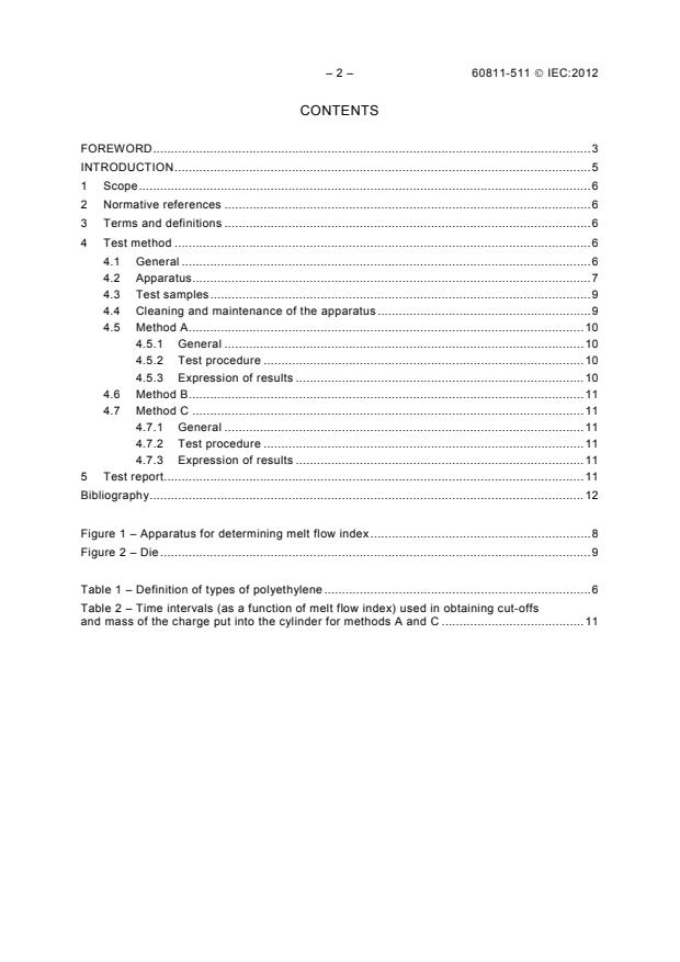 IEC 60811-511:2012 describes the procedure for the measurement of the melt flow index for polyethylene compounds. IEC 60811-511:2012 cancels and replaces Clause 10 of IEC 60811-4-1:2004, which is withdrawn. Full details of the replacements are shown in Annex A of IEC 60811-100:2012. There are no specific technical changes with respect to the previous edition, but see the Foreword to IEC 60811-100:2012.