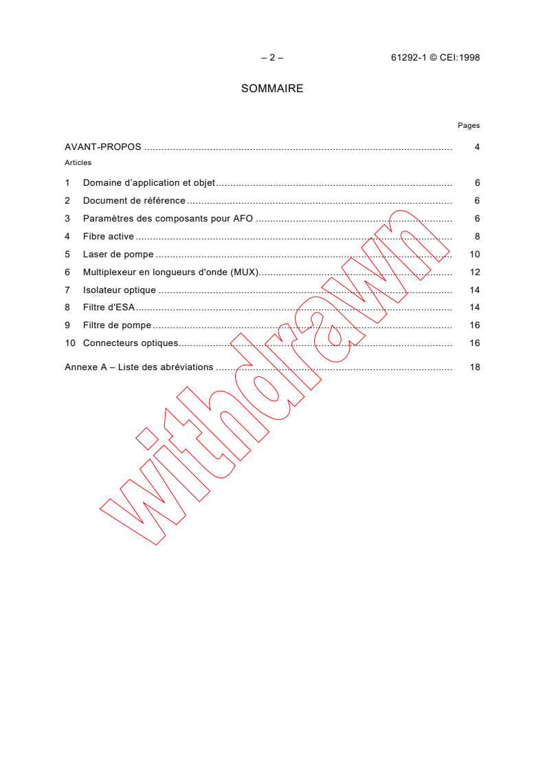 IEC TR 61292-1:1998, titled Fibre optics - Parameters of amplifier components, is a technical report published by the International Electrotechnical Commission (IEC). It targets the optical components used in Optical Fibre Amplifiers (OFAs). This document is not a normative standard or specification but serves as an informative guide aiming to enhance the understanding of the essential parameters that influence the operation and applications of OFAs.