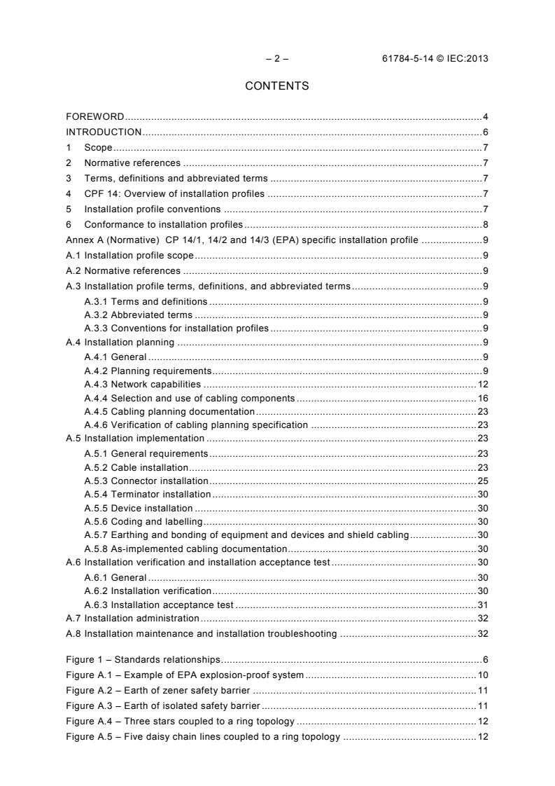 IEC 61784-5-14:2013 is an international standard published by the International Electrotechnical Commission (IEC) that specifies the installation profiles for CPF 14 (EPA) fieldbuses within industrial communication networks. As part of the IEC 61784 series, this standard supports the use of communication networks in industrial control systems by providing detailed guidelines for the proper installation of fieldbus communication systems. This second edition, a technical revision of the 2010 version, introduces additional requirements for CP 14/3 and provides recommendations for linear and ring topology networks, along with updates to key technical tables.