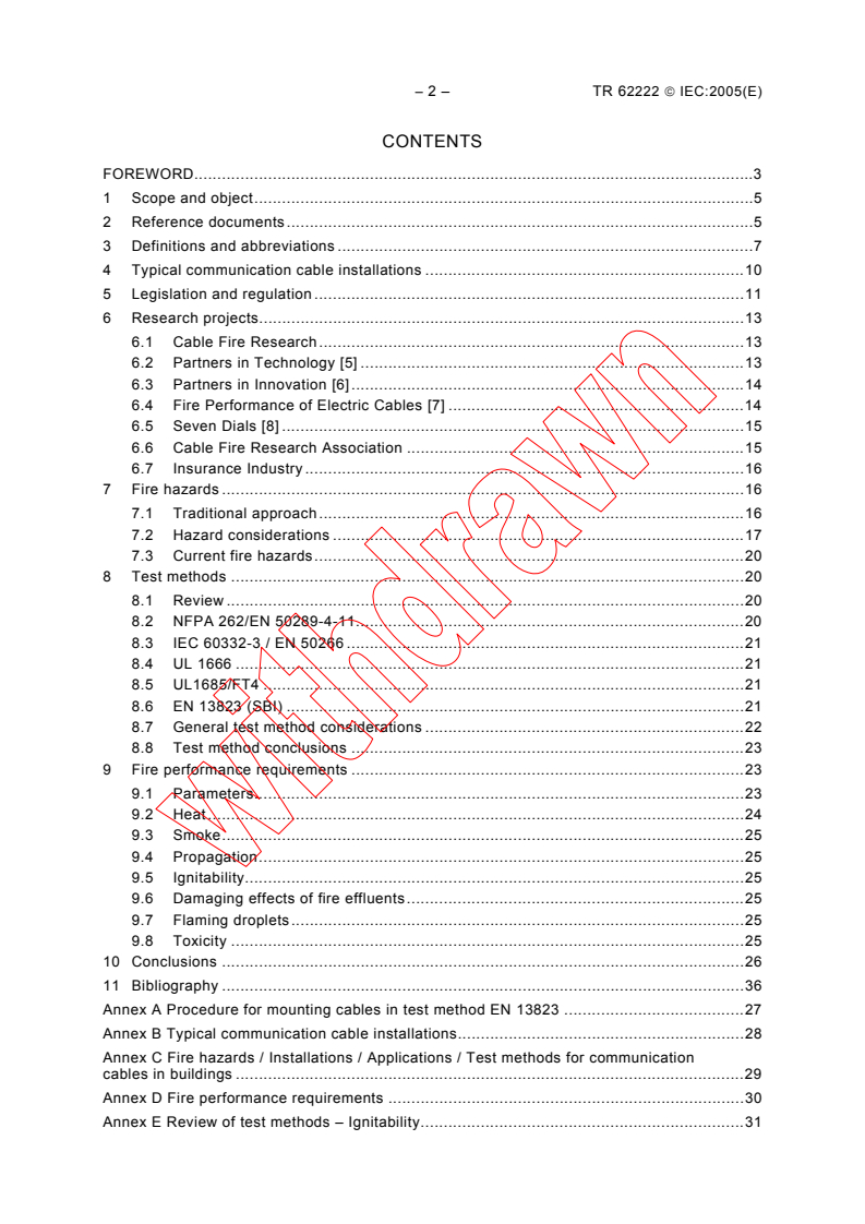 Keywords: IEC TR 62222:2005, fire performance, communication cables, building installations, copper cables, optical fibre cables, cable fire safety