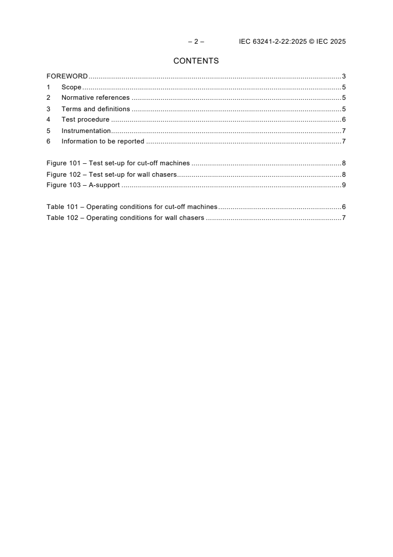 IEC 63241-2-22:2025 is Part 2-22 in the IEC 63241 series and provides the particular requirements for dust measurement procedures applicable to hand-held cut-off machines and wall chasers. This Part is to be used in conjunction with IEC 63241-1:2023 (Part 1: General requirements) and supplements, modifies or replaces clauses in Part 1 where specified. Where a subclause of Part 1 is not mentioned, it continues to apply as relevant.