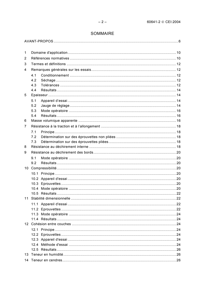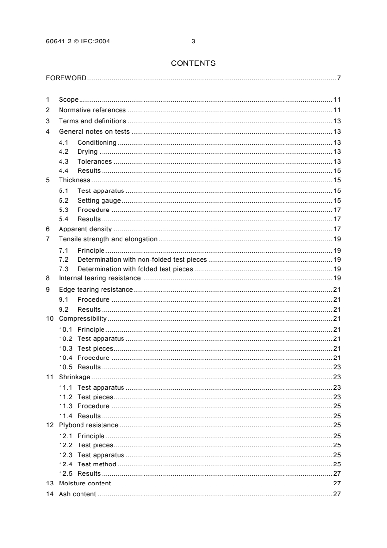IEC 60641-2:2004 is a standard published by the International Electrotechnical Commission (IEC). Its full title is "Pressboard and presspaper for electrical purposes - Part 2: Methods of tests". This standard covers: Applies to pressboard and presspaper for electrical purposes. The series does not apply to laminated material. This part specifies the test methods to be used in testing pressboard and presspaper for electrical purposes to meet the requirements prescribed in the specification sheets of Part 3. NOTE In this standard, reference is made in several places to ISO standards accompanied by a short description of the method used. It is to be understood that this short description is meant for identification purposes only and that all details should be taken from the ISO standard itself. The main changes with respect to the previous edition are listed below: The following test methods have been cancelled: - Flexibility - Conductivity of the organic extract - Contamination of liquid dielectrics The following test methods have been rewritten: - Compressibility - Conductivity of the aqueous extract - Cohesion between plies The following test method has introduced: - Determination of metallic particles with X-ray.