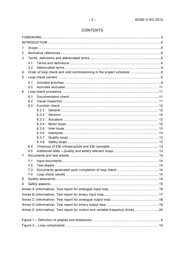 IEC 62382:2012 describes the steps recommended to complete a loop check, which comprises the activities between the completion of the loop construction (including installation and point-to-point checks) and the start-up of cold commissioning. This standard is applicable for the construction of new plants and for expansion/retrofits (i.e. revamping) of E&I installations in existing plants (including PLC, BAS, DCS, panel-mounted and field instrumentation). This second edition cancels and replaces the first edition published in 2006 and constitutes a technical revision. The main changes with respect to the previous edition are: The definition of the documents mentioned in the standards is in accordance with IEC 62708: Documents for Electrical and Instrumentation Projects in the Process Industry. Subclause 6.3 has been revised.