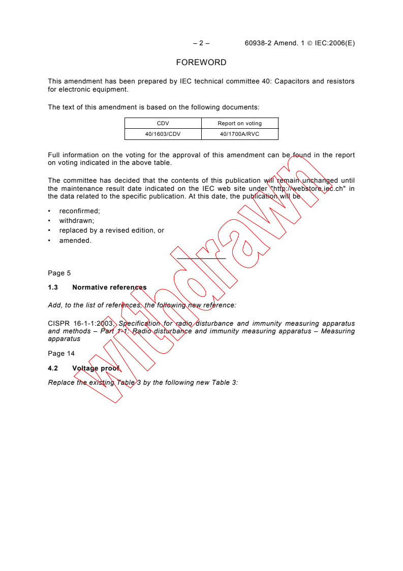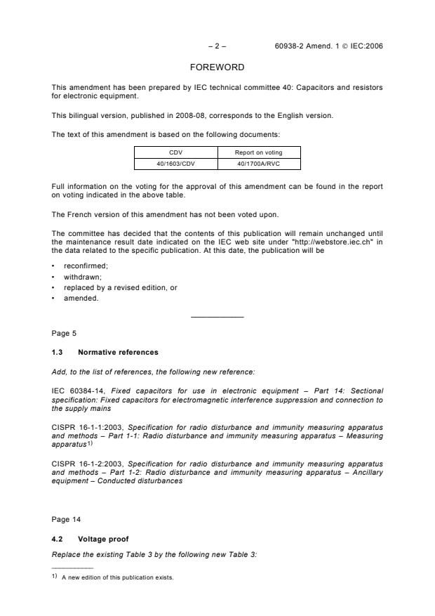 This amendment has been prepared by IEC technical committee 40: Capacitors and resistors